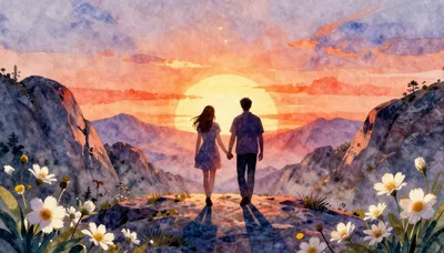 Explore this beautiful collection of sunrise mountain view art, rendered in a minimalist watercolor style. Each piece captures the serene moment of dawn breaking over a majestic peak, with a lone figure contemplating the vast landscape. These images are ideal for adding a touch of peace and inspiration to your digital space, presentations, or personal projects. 🌄